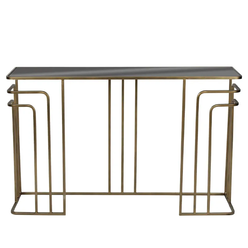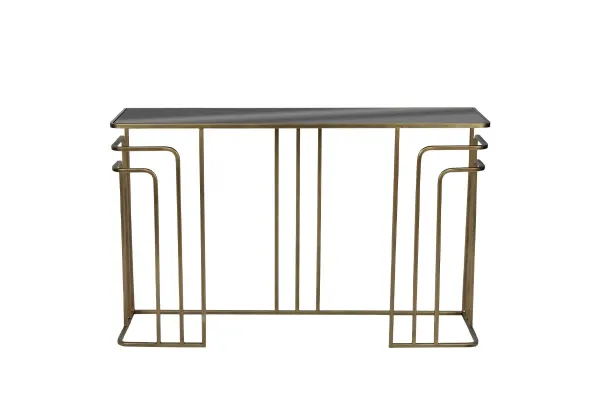 ΚΟΝΣΟΛΑ ΜΕΤΑΛΛΙΚΗ ΧΡΥΣΟ ΜΕ ΓΥΑΛΙ ΟΡΘΟΓΩΝΙΟ ART DECO - 120x32x75cm 1/KIB