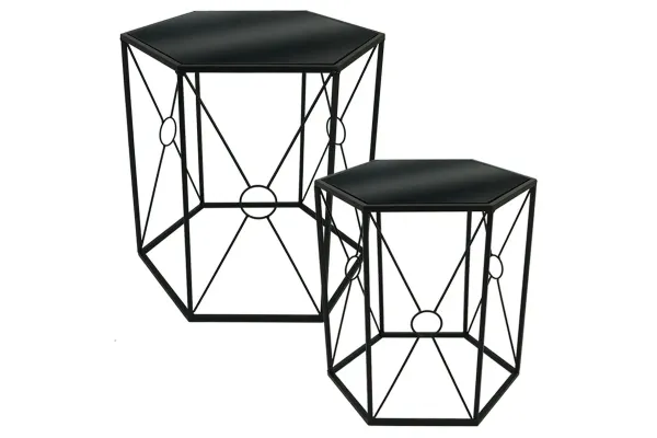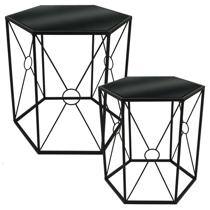 ΔΙΑΚΟΣΜΗΤΙΚΑ ΕΞΑΓΩΝΑ ΤΡΑΠΕΖΑΚΙΑ ΣΕΤ/2 - ΧΡΩΜΑ: ΜΑΥΡΟ - ΥΛΙΚΟ: ΜΕΤΑΛΛΟ, ΓΥΑΛΙ - ΔΙΑΣΤΑΣΕΙΣ: L:46x40x44, S:37x32x40cm - ΚΙΒΩΤΙΟ: 1/1 DECORATIVE HEXAGON TABLES SET/2 - COLOR: BLACK - MATERIAL: METAL, GLASS - DIMENSIONS: L:46x40x44, S:37x32x40cm - BOX: 1/1