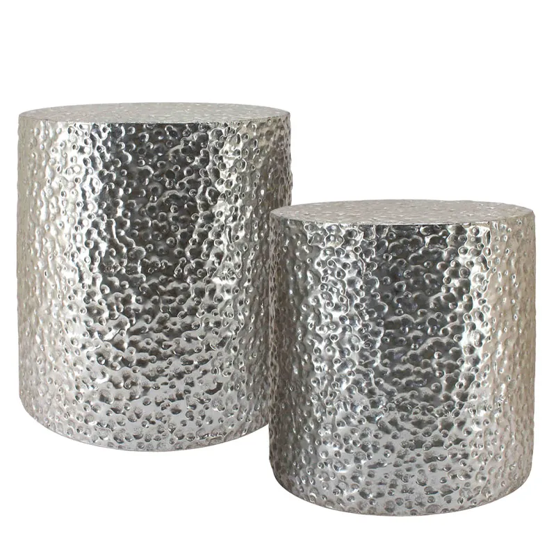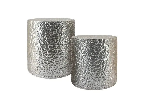 ΜΕΤΑΛΛΙΚA ΤΡΑΠΕΖAKIA ΣΕΤ/2 ΣΤΡΟΓΓΥΛΑ ΑΣΗΜΙ ΣΦΥΡΙΛΑΤΟ - L:Φ51.5x55.5, S:Φ43.5x50cm 1/ΚΙΒ