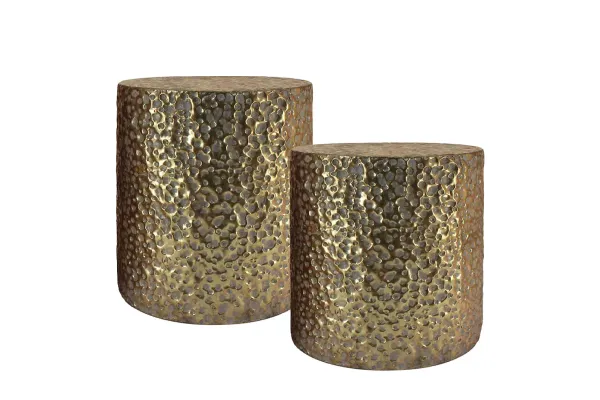 ΜΕΤΑΛΛΙΚA ΤΡΑΠΕΖAKIA ΣΕΤ/2 ΣΤΡΟΓΓΥΛΑ ΧΡΥΣΟ ΣΦΥΡΙΛΑΤΟ - L:Φ51.5x55.5, S:Φ43.5x50cm 1/ΚΙΒ