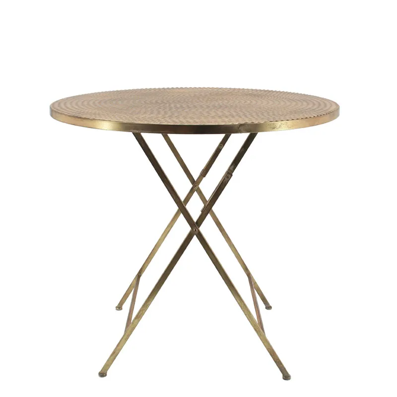 ΜΕΤΑΛΛΙΚΟ ΠΤΥΣΣΟΜΕΝΟ ΤΡΑΠΕΖΑΚΙ ΧΡΥΣΟ ΣΤΡΟΓΓΥΛΟ - Φ56x55.5cm 1/KIB