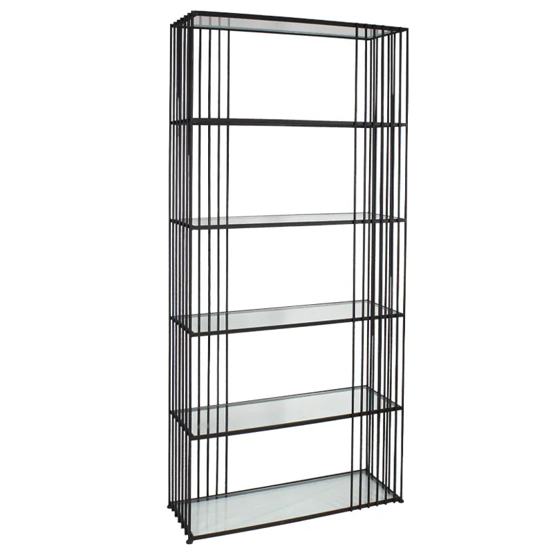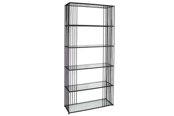 ΡΑΦΙΕΡΑ ΜΕΤΑΛΛΙΚΗ ΜΑΥΡΟ ΜΑΤ ΜΕ ΓΥΑΛΙΝΑ ΡΑΦΙΑ Χ5 ΟΡΘΟΓΩΝΙO MINIMAL - 80.5x27x179cm 1/KIB