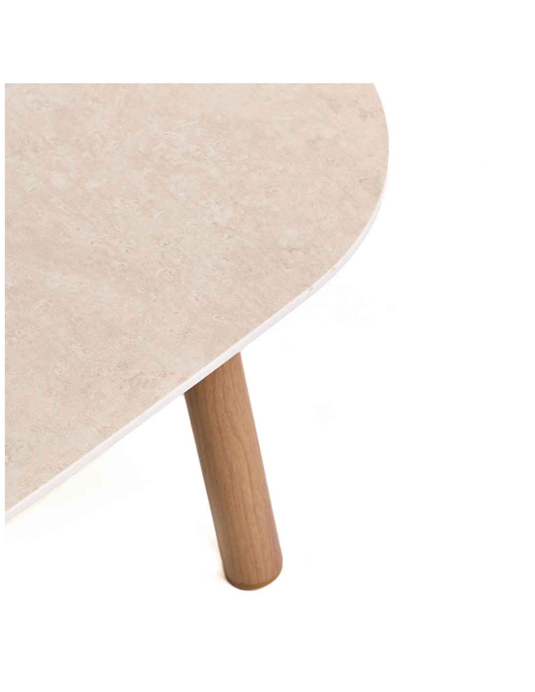 Ο σκελετός από αλουμίνιο και ξύλο προσφέρει εξαιρετική αντοχή στον χρόνο και τις καιρικές συνθήκες, ενώ τα αποσπόμενα, πλενόμενα μαξιλάρια με αδιάβροχο ύφασμα εξασφαλίζουν άνεση και πρακτικότητα. Η κεραμική επιφάνεια του τραπεζιού προσθέτει μοντέρνα αισθητική και ευκολία στη χρήση.
