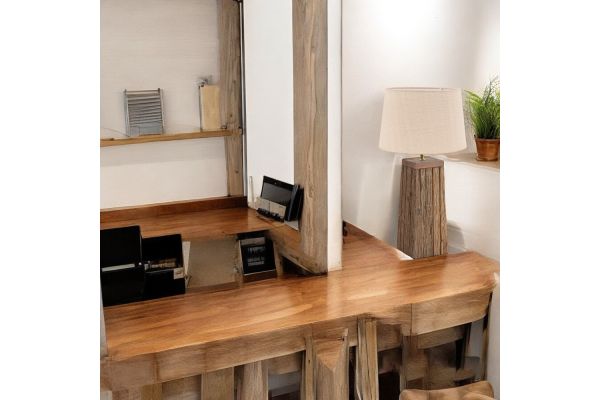 "> Table Lamp Long From Recycled Wood With abazur Beige 1xE27