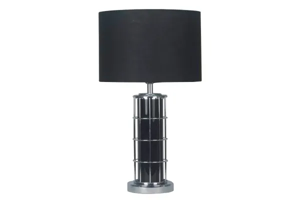 ΕΠΙΤΡΑΠΕΖΙΟ ΔΙΑΚΟΣΜΗΤΙΚO ΠΟΡΤΑΤΙΦ - ΧΡΩΜΑ/ΣΧΕΔΙΟ: ΜΑΥΡΟ-ΑΣΗΜΙ / ΠΛΕΓΜΑ-ΚΥΛΙΝΔΡΟΣ - ΥΛΙΚΟ: ΜΕΤΑΛΛΟ, ΓΥΑΛΙ, ΥΦΑΣΜΑ - ΔΙΑΣΤΑΣΕΙΣ: 30.5x53cm - ΚΙΒΩΤΙΟ: 1/20 DECORATIVE TABLE LAMP - COLOR/DESIGN: BLACK-SILVER / GRID-CYLINDER - MATERIAL: METAL, GLASS, FABRIC - DIMENSIONS: 30.5x53cm - BOX: 1/20