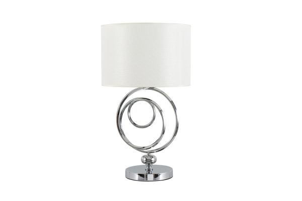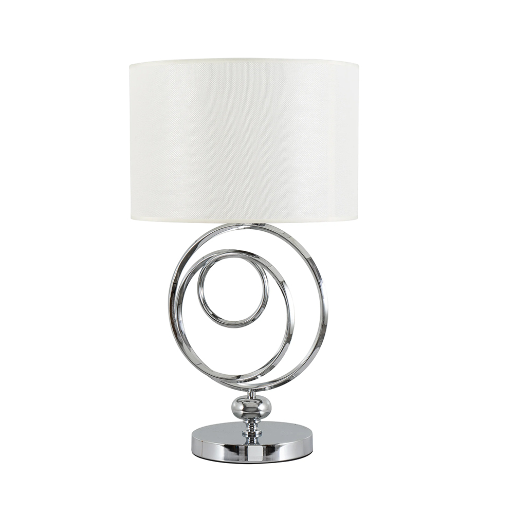 Αναβαθμίστε τη διακόσμηση του χώρου σας με αυτό το κομψό επιτραπέζιο φωτιστικό που συνδυάζει μοντέρνο design και διαχρονική φινέτσα. Η μεταλλική του βάση σε φινίρισμα νίκελ, διαμορφωμένη με τρεις κυκλικές λεπτομέρειες, δημιουργεί ένα εντυπωσιακό παιχνίδι φωτός και σχήματος, ενώ το μπεζ υφασμάτινο αμπαζούρ προσφέρει απαλό, ζεστό φωτισμό.