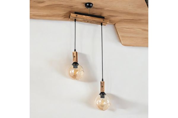 Κρεμαστό Φωτιστικό Δίφωτο Ξύλο Ράγα Μελί Γυαλί 45x110H