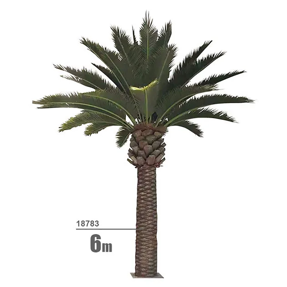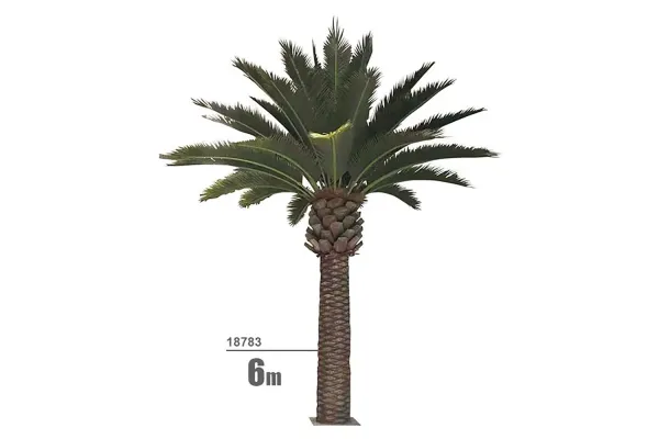 Ο τεχνητός Φοίνικας Palm ύψους 6 μέτρων είναι μια επιβλητική και εξαιρετικά ρεαλιστική επιλογή για μεγάλους χώρους που απαιτούν tropical ατμόσφαιρα και πλούσια διακόσμηση. Ο ίσιος κορμός μήκους 4 m, κατασκευασμένος από fiberglass με εσωτερικούς μεταλλικούς σωλήνες, προσφέρει μέγιστη σταθερότητα και πολύ φυσική υφή.