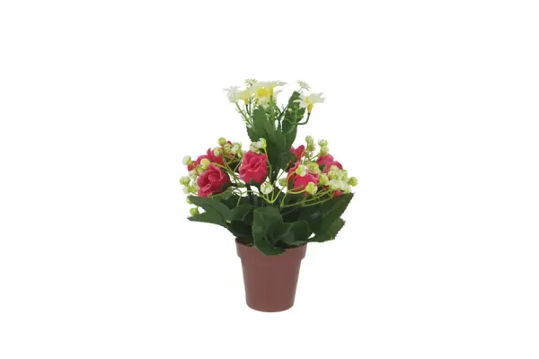 ΤΟ ΧΡΩΜΑ ΤΗΣ ΓΛΑΣΤΡΑΣ ΜΠΟΡΕΙ ΝΑ ΔΙΑΦΕΡΕΙ / THE COLOR OF THE POT MAY DIFFER ΓΛΑΣΤΡΑΚΙ FL-9 ΜΕ ΣΥΝΘΕΣΗ ΤΡΙΑΝΤΑΦΥΛΛΑΚΙ - ΥΛΙΚΟ: ΠΛΑΣΤΙΚΟ, ΥΦΑΣΜΑ - ΧΡΩΜΑ: ΦΟΥΞ - ΔΙΑΣΤΑΣΕΙΣ: Υ19cm SMALL POT FL-9 WITH ROSES ARRANGEMENT - MATERIAL: PLASTIC, FABRIC - COLOR: FOUCHSIA - DIMENSIONS: Η19cm