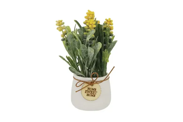 ΓΛΑΣΤΡΑΚΙ ΛΕΥΚΟ ΜΕ ΠΡΑΣΙΝΑΔΑ ΚΑΙ ΑΝΘΑΚΙΑ - ΥΛΙΚΟ: ΚΕΡΑΜΙΚΟ - ΧΡΩΜΑ: ΛΕΥΚΟ, ΚΙΤΡΙΝΟ - ΔΙΑΣΤΑΣΕΙΣ: Υ19cm - ΚΙΒΩΤΙΟ: 1/48 SMALL WHITE POT WITH GREENERY AND FLOWERS - MATERIAL: CERAMIC - COLOR: WHITE, YELLOW - DIMENSIONS: H19cm - BOX: 1/48