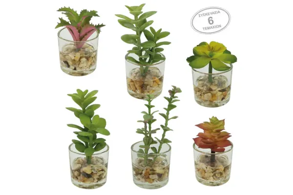 ΠΑΧΥΦΥΤΑ ΜΙΝΙ ΣΕ ΓΥΑΛΙΝΟ ΚΑΣΠΩ ΣΕΤ/6 - ΧΡΩΜΑ: ΑΣΣΟΡΤΙ - ΥΛΙΚΟ: ΓΥΑΛΙ, ΠΛΑΣΤΙΚΟ - ΔΙΑΣΤΑΣΕΙΣ: 5x12cm - ΚΙΒΩΤΙΟ: 6/96 MINI MIXED PLANT IN GLASS POT SET/6 - COLOR: ASSORTED - MATERIAL: GLASS, PLASTIC - DIMENSIONS: 5x12cm - BOX: 6/96