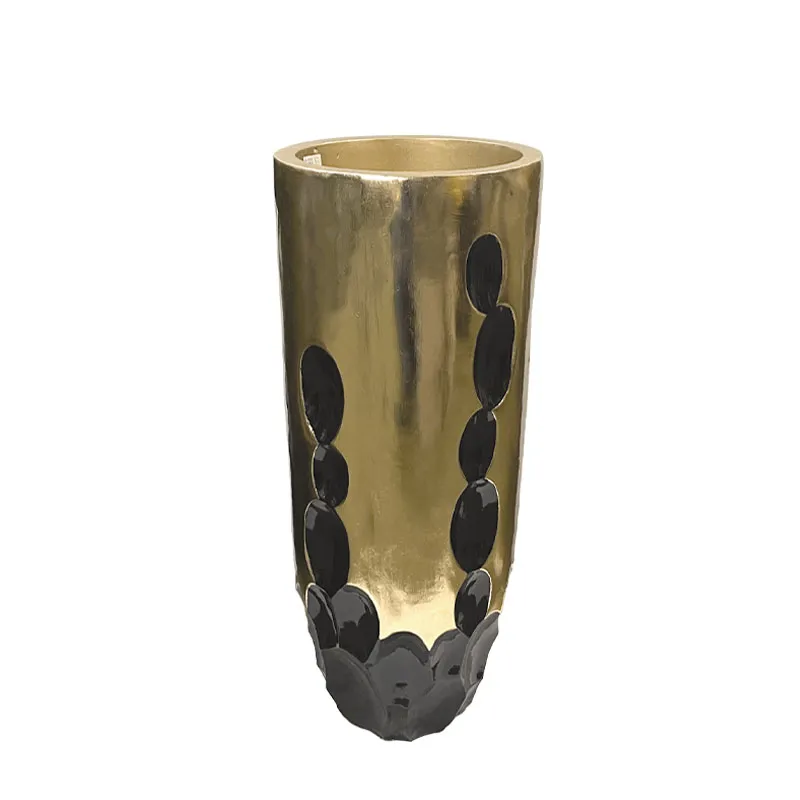 FIBERCLAY ΚΑΣΠΩ ΣΤΡΟΓΓΥΛΟ ΜΕΓΑΛΟ - ΧΡΩΜΑ: ΜΑΥΡΟ/ΧΡΥΣΟ - ΣΧΕΔΙΟ: ΚΥΚΛΙΚΑ ΚΟΙΛΩΜΑΤΑ - KIBΩΤΙΟ: 1 ΔΙΑΣΤΑΣΕΙΣ / DIMΕNSIONS: Φ36x90cm FIBERCLAY POT ROUND LARGE - COLOR: BLACK/GOLD - DESIGN: CIRCULAR HOLLOWS - BOX: 1