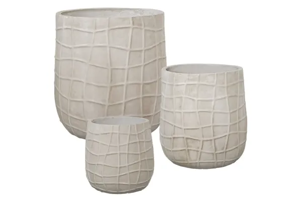 ΔΙΑΚΟΣΜΗΤΙΚΟ FIBERCLAY ΚΑΣΠΩ ΣΕΤ/3 ΠΛΕΓΜΑ - ΧΡΩΜΑ: ΕΚΡΟΥ - ΔΙΑΣΤΑΣΕΙΣ: S:Φ23x23, M:Φ32.5x32.5, L:Φ45x45cm - ΚΙΒΩΤΙΟ: 1/1 DECORATIVE FIBERCLAY PLANTER SET/3 GRID - COLOR: CREAM - DIMENSIONS: S:Φ23x23, M:Φ32.5x32.5, L:Φ45x45cm - BOX: 1/1