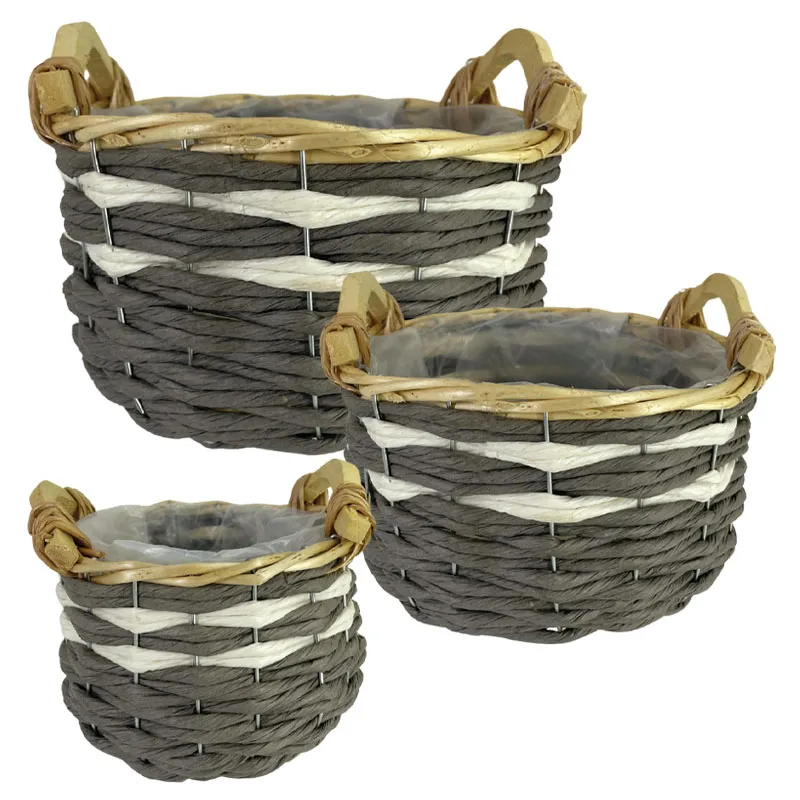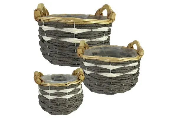 ΚΑΛΑΘΙ ΚΑΣΠΩ ΣΕΤ/3 ΣΤΡΟΓΓΥΛΟ ΞΥΛΙΝΟ ΧΕΡΟΥΛΙ - ΧΡΩΜΑ: ΓΚΡΙ / ΛΕΥΚΟ / ΦΥΣΙΚΟ - ΥΛΙΚΟ: ΨΑΘΑ, ΣΥΡΜΑ, ΞΥΛΟ, ΝΑΫΛΟΝ - ΔΙΑΣΤΑΣΕΙΣ: L:Φ28x15/19, M:Φ21x12.5/15, S:Φ16x10.5/13cm - ΚΙΒ: 8 WICKER BASKETS POTS SET/3 ROUND WOODEN HANDLE - COLOR: GRAY / WHITE / NATURAL - MATERIAL: WICKER, WIRE, WOOD, NYLON - DIMENSIONS: L:Φ28x15/19, M:Φ21x12.5/15, S:Φ16x10.5/13cm - BOX: 8