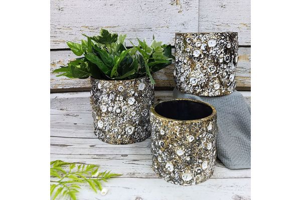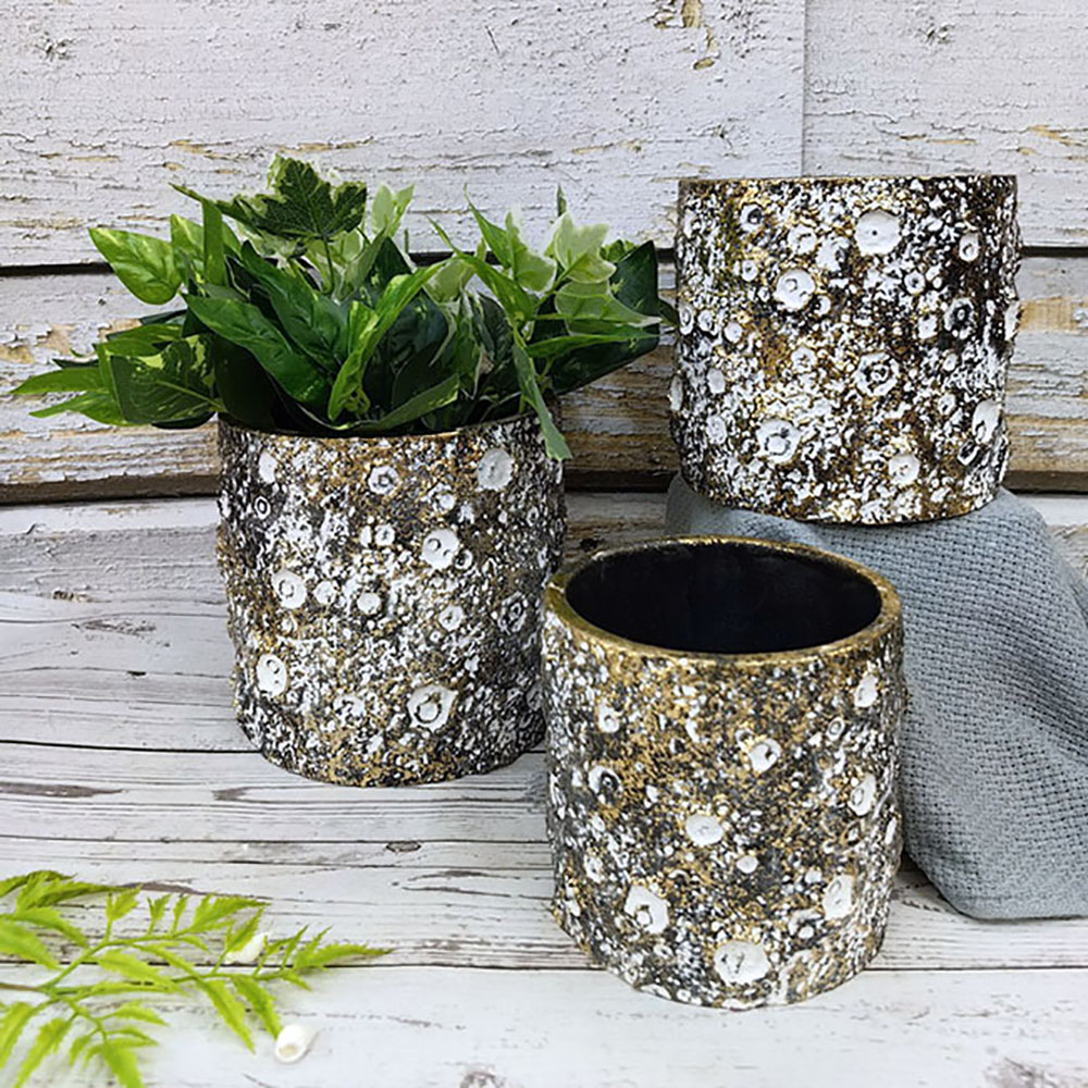 Castle of Marhome in gold/white color for the decoration of your space. Made of cement, which is a material heavy but highly resistant to adverse conditions and can therefore be used outdoor and indoor. It has a round opening to place a pot of corresponding shape and smaller dimensions or for direct planting within the casp.
