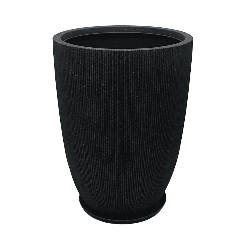 ΝΕΟ ΚΑΙΝΟΤΟΜΟ ΥΛΙΚΟ / NEW INNOVATIVE MATERIAL POLYRESIN ΚΑΣΠΩ ME ΠΙΑΤΟ - ΧΡΩΜΑ: ΜΑΥΡΟ ΓΡΑΝΙΤΗ - ΣΧΕΔΙΟ: ΡΙΓΩΤΟ ΜΑΚΡΥ - ΚΙΒ: 1 ΔΙΑΣΤΑΣΕΙΣ / DIMΕNSIONS: Φ44x57.5cm POLYRESIN POT WITH SAUCER - COLOR: GRANITE BLACK - DESIGN: STRIPED LONG - BOX: 1