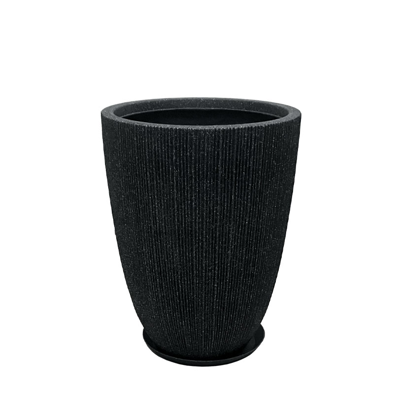 ΝΕΟ ΚΑΙΝΟΤΟΜΟ ΥΛΙΚΟ / NEW INNOVATIVE MATERIAL POLYRESIN ΚΑΣΠΩ ME ΠΙΑΤΟ - ΧΡΩΜΑ: ΜΑΥΡΟ ΓΡΑΝΙΤΗ - ΣΧΕΔΙΟ: ΡΙΓΩΤΟ ΜΑΚΡΥ - ΚΙΒ: 1 ΔΙΑΣΤΑΣΕΙΣ / DIMΕNSIONS: Φ37x48.5cm POLYRESIN POT WITH SAUCER - COLOR: GRANITE BLACK - DESIGN: STRIPED LONG - BOX: 1