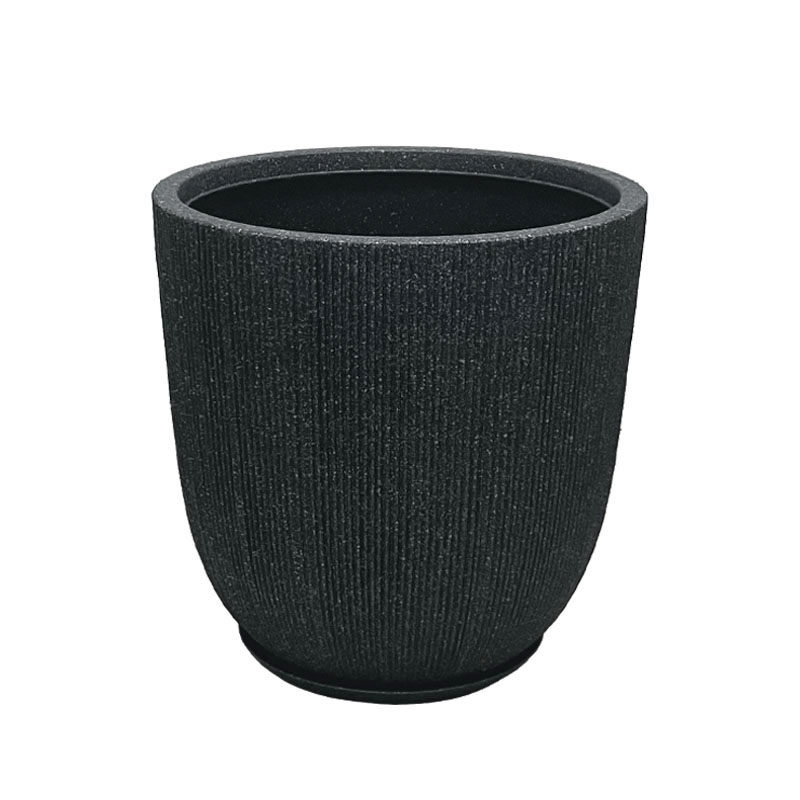 ΝΕΟ ΚΑΙΝΟΤΟΜΟ ΥΛΙΚΟ / NEW INNOVATIVE MATERIAL POLYRESIN ΚΑΣΠΩ ME ΠΙΑΤΟ - ΧΡΩΜΑ: ΜΑΥΡΟ ΓΡΑΝΙΤΗ - ΣΧΕΔΙΟ: ΡΙΓΩΤΟ - ΚΙΒ: 1 ΔΙΑΣΤΑΣΕΙΣ / DIMΕNSIONS: Φ44x44.5cm POLYRESIN POT WITH SAUCER - COLOR: GRANITE BLACK - DESIGN: STRIPED - BOX: 1