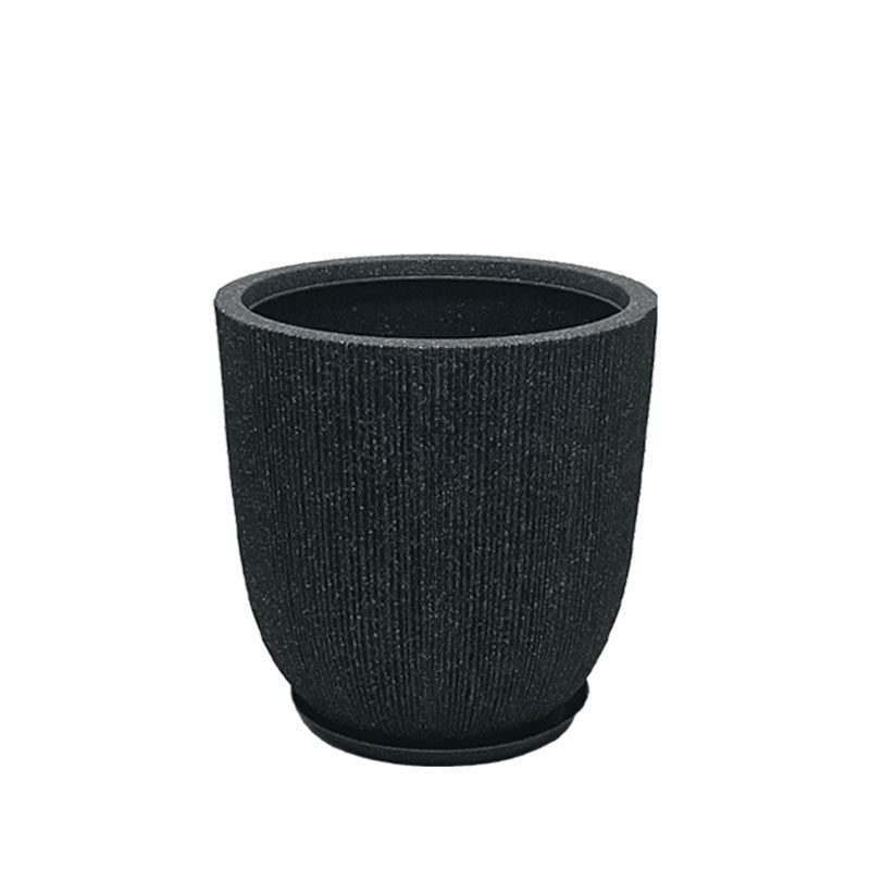 ΝΕΟ ΚΑΙΝΟΤΟΜΟ ΥΛΙΚΟ / NEW INNOVATIVE MATERIAL POLYRESIN ΚΑΣΠΩ ME ΠΙΑΤΟ - ΧΡΩΜΑ: ΜΑΥΡΟ ΓΡΑΝΙΤΗ - ΣΧΕΔΙΟ: ΡΙΓΩΤΟ - ΚΙΒ: 1 ΔΙΑΣΤΑΣΕΙΣ / DIMΕNSIONS: Φ37x37.5cm POLYRESIN POT WITH SAUCER - COLOR: GRANITE BLACK - DESIGN: STRIPED - BOX: 1