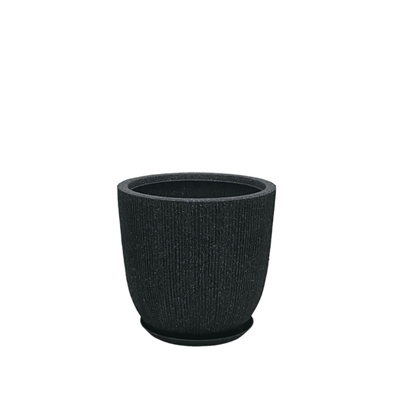 ΝΕΟ ΚΑΙΝΟΤΟΜΟ ΥΛΙΚΟ / NEW INNOVATIVE MATERIAL POLYRESIN ΚΑΣΠΩ ME ΠΙΑΤΟ - ΧΡΩΜΑ: ΜΑΥΡΟ ΓΡΑΝΙΤΗ - ΣΧΕΔΙΟ: ΡΙΓΩΤΟ - ΚΙΒ: 1 ΔΙΑΣΤΑΣΕΙΣ / DIMΕNSIONS: Φ31x31.5cm POLYRESIN POT WITH SAUCER - COLOR: GRANITE BLACK - DESIGN: STRIPED - BOX: 1