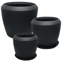 ΝΕΟ ΚΑΙΝΟΤΟΜΟ ΥΛΙΚΟ / NEW INNOVATIVE MATERIAL POLYRESIN ΚΑΣΠΩ ME ΠΙΑΤΟ ΣΕΤ/5 - ΧΡΩΜΑ: ΜΑΥΡΟ ΑΝΘΡΑΚΙ - ΣΧΕΔΙΟ: ΠΟΜΠΕ - ΚΙΒ: 1 ΔΙΑΣΤΑΣΕΙΣ / DIMΕNSIONS: L:Φ55.6x48.4, M:Φ44x39.5, S:Φ33.5x30.5cm POLYRESIN POT WITH SAUCER SET/5 - COLOR: COAL BLACK - DESIGN: POMPE - BOX: 1