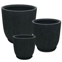 ΝΕΟ ΚΑΙΝΟΤΟΜΟ ΥΛΙΚΟ / NEW INNOVATIVE MATERIAL POLYRESIN ΚΑΣΠΩ ME ΠΙΑΤΟ ΣΕΤ/6 - ΧΡΩΜΑ: ΜΑΥΡΟ ΓΡΑΝΙΤΗ - ΣΧΕΔΙΟ: ΡΙΓΩΤΟ - ΚΙΒ: 1 ΔΙΑΣΤΑΣΕΙΣ / DIMΕNSIONS: L:Φ44x44.5, M:Φ37x37x37.5, S:Φ31x31x31.5cm POLYRESIN POT WITH SAUCER SET/6 - COLOR: GRANITE BLACK - DESIGN: STRIPED - BOX: 1