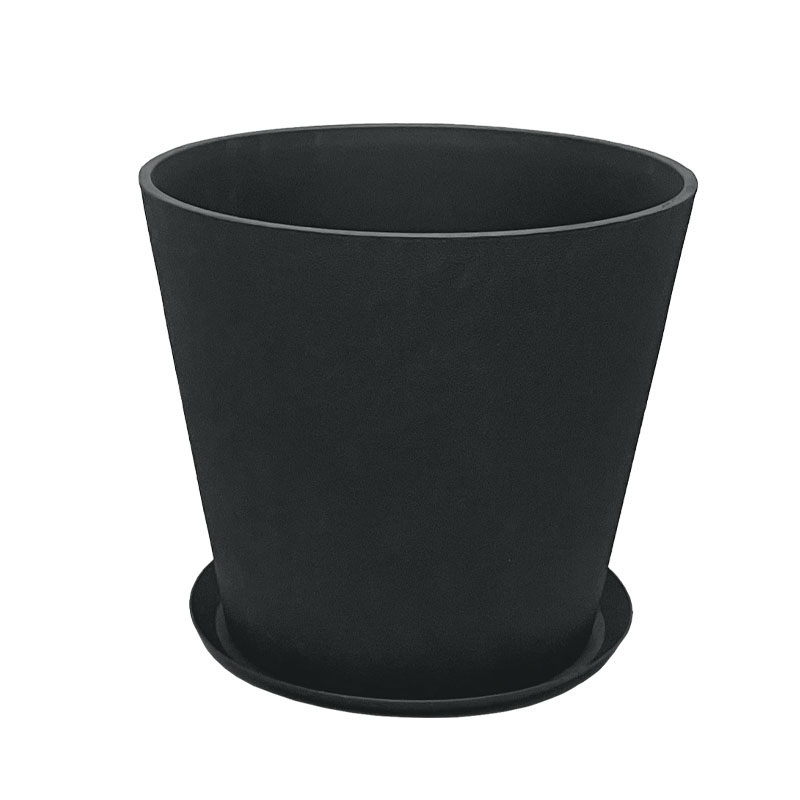 ΝΕΟ ΚΑΙΝΟΤΟΜΟ ΥΛΙΚΟ / NEW INNOVATIVE MATERIAL STONE POLYRESIN ΚΑΣΠΩ ME ΠΙΑΤΟ - ΧΡΩΜΑ: ΜΑΥΡΟ ΑΝΘΡΑΚΙ - ΣΧΕΔΙΟ: ΚΩΝΙΚΟ ΚΟΝΤΟ - ΚΙΒ: 1 ΔΙΑΣΤΑΣΕΙΣ / DIMΕNSIONS: Φ50x44.5cm STONE POLYRESIN POT WITH SAUCER - COLOR: CHARCOAL BLACK - DESIGN: SHORT CONE - BOX: 1