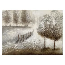 Πίνακας σε Καμβά Δέντρα 80x60εκ. Δρόμο με Φράχτη