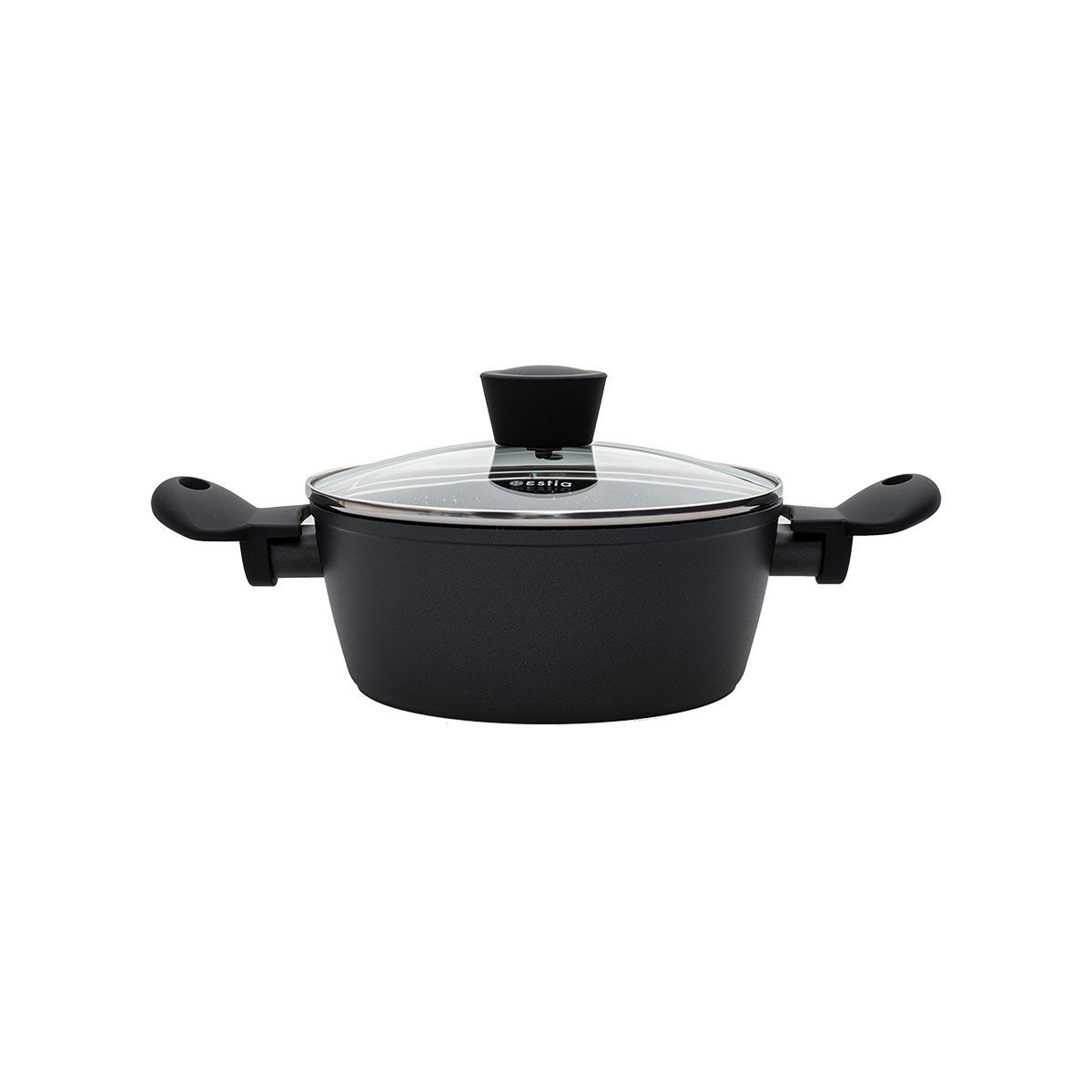 Κατσαρόλα από πρεσαριστό αλουμίνιο ,με τριπλή μαρμάρινη επίστρωση και αντιολισθητικές λαβές βακελίτη.