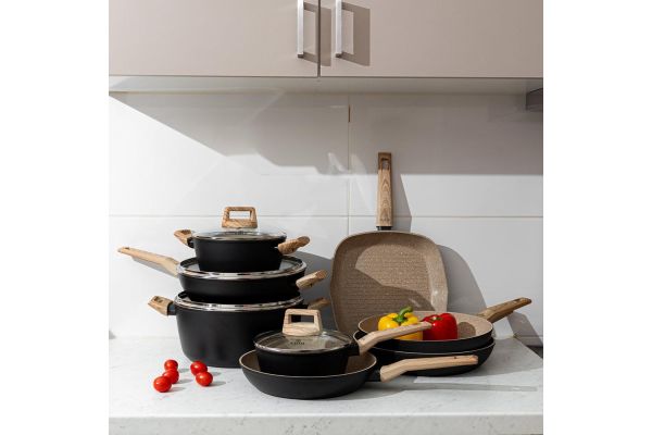 Απαλλαγμένο από PFOA, κατάλληλο για όλες τις εστίες — ηλεκτρικές, κεραμικές, αλογόνου, υγραερίου και επαγωγικές.