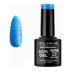 Ημιμόνιμο Βερνίκι Semi Gel 1098 Steel BlueGlitter 8ml Elixir