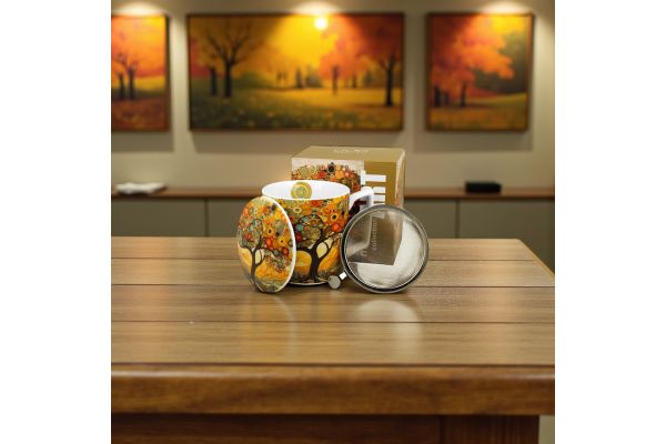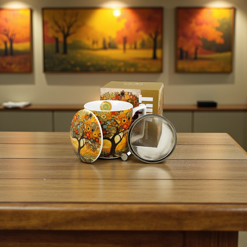 Μια κούπα που μετατρέπει την καθημερινή απόλαυση του τσαγιού σε μικρή τελετουργία. Το Modern Tree απλώνεται γύρω από την πορσελάνη με ζεστές, γήινες και αφηρημένες λεπτομέρειες, δημιουργώντας ένα έργο τέχνης που γεμίζει τον χώρο με φως και ηρεμία. Το μεταλλικό φίλτρο και το καπάκι συνδυάζουν πρακτικότητα και αισθητική, ενώ η premium συσκευασία δώρου την κάνει ιδανική επιλογή για όσους αγαπούν το design και τις ιδιαίτερες λεπτομέρειες.