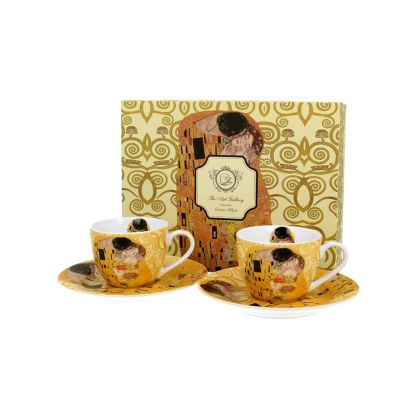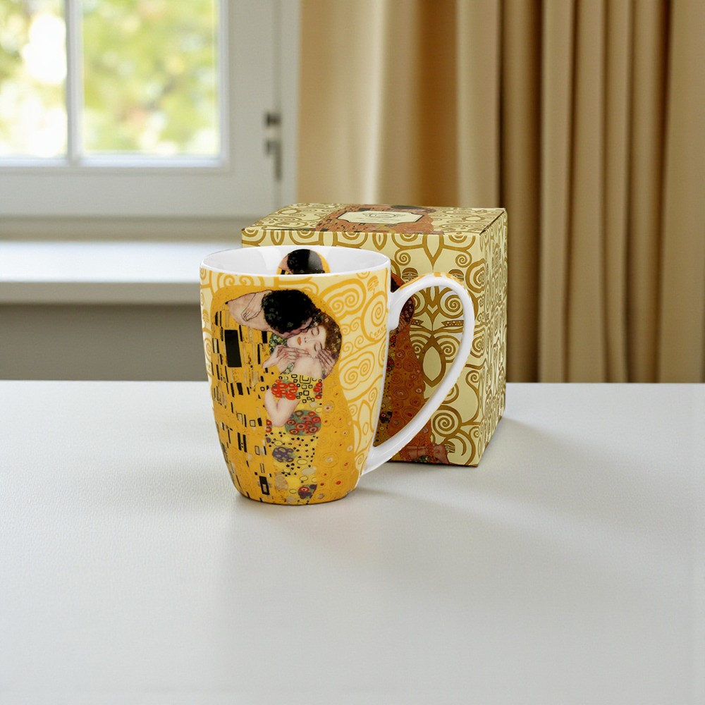 Η κούπα The Kiss DUO GIFT μεταφέρει όλη τη μαγεία του εμβληματικού έργου του Klimt στο καθημερινό σου τελετουργικό. Ζεστή, εκρού και γεμάτη χρυσές λεπτομέρειες, γίνεται μια μικρή στιγμή πολυτέλειας κάθε φορά που απολαμβάνεις τον καφέ ή το τσάι σου. Ιδανική για όσους αγαπούν την τέχνη και θέλουν να χαρίζουν στα πρωινά τους λίγη έμπνευση και ρομαντισμό.