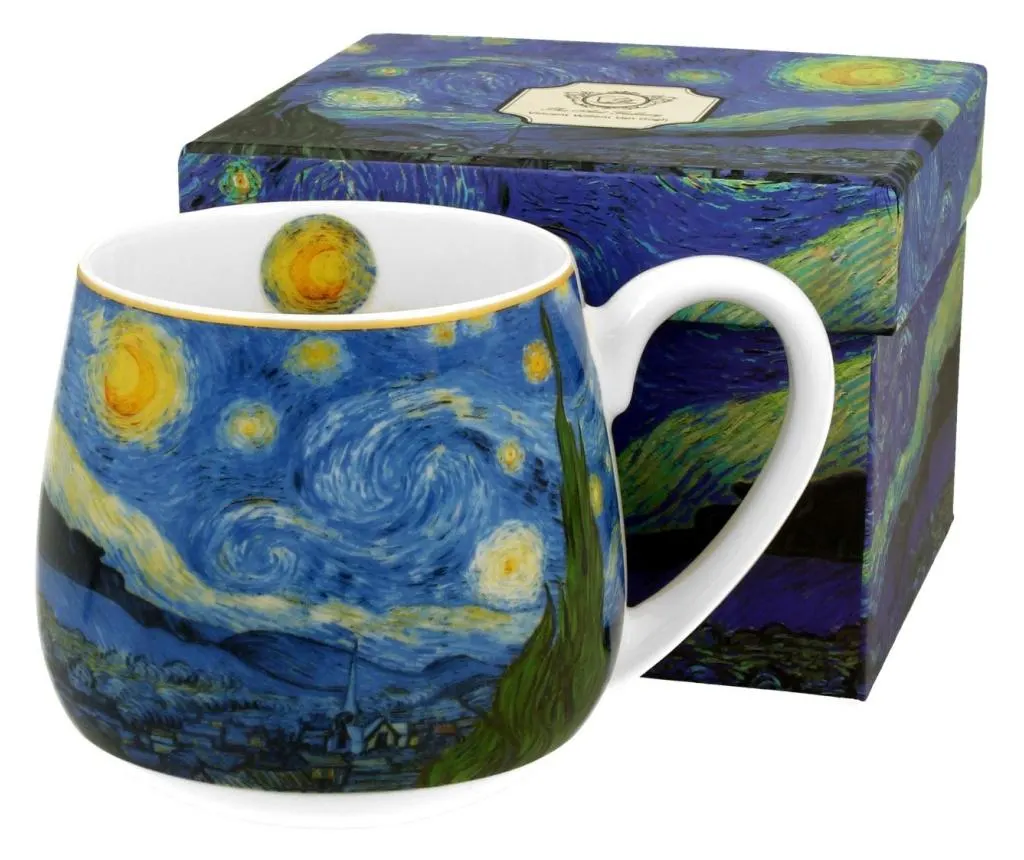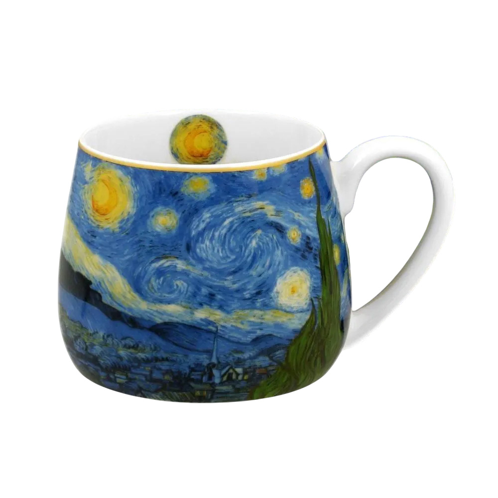 Αναδείξτε τις στιγμές του καφέ ή του τσαγιού σας με την εντυπωσιακή κούπα STARRY NIGHT, εμπνευσμένη από το αριστούργημα του Vincent van Gogh. Με σχήμα βαρελιού και μοναδικό σχέδιο που αναπαριστά τον μαγευτικό νυχτερινό ουρανό, αποτελεί ένα κομψό έργο τέχνης για την καθημερινότητά σας.Κατασκευασμένη από πορσελάνη New Bone China, διακρίνεται για την εξαιρετική ανθεκτικότητα, τη λεπτή υφή και τη γυαλιστερή, κρεμ-λευκή απόχρωσή της. Ιδανική για κάθε στιγμή απόλαυσης, ενώ συνοδεύεται από πολυτελές κουτί δώρου με το ίδιο μοτίβο – τέλεια πρόταση για ένα εκλεπτυσμένο δώρο τέχνης.