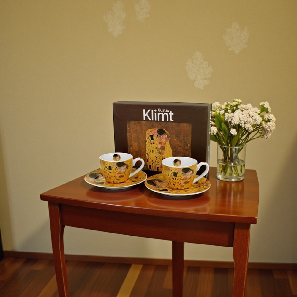 Το σετ των 2 espresso The Kiss φέρνει την τέχνη και τον ρομαντισμό του Gustav Klimt σε κάθε μικρή στιγμή απόλαυσης. Οι χρυσοκίτρινες αποχρώσεις και η χαρακτηριστική υφή του έργου δίνουν στα φλιτζάνια μοναδική κομψότητα, μετατρέποντας τον espresso σε μια μίνι τελετουργία που ξυπνά τις αισθήσεις.