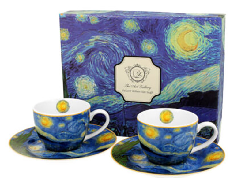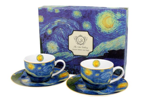 Ανακαλύψτε την τέχνη μέσα στην καθημερινή σας απόλαυση με το σετ 2 φλιτζανιών espresso STARRY NIGHT, εμπνευσμένο από το αριστούργημα του Vincent van Gogh. Κάθε φλιτζάνι και πιατάκι είναι διακοσμημένο με το εμβληματικό έργο, προσφέροντας κομψότητα και καλλιτεχνική αύρα σε κάθε γουλιά.
