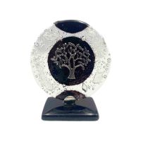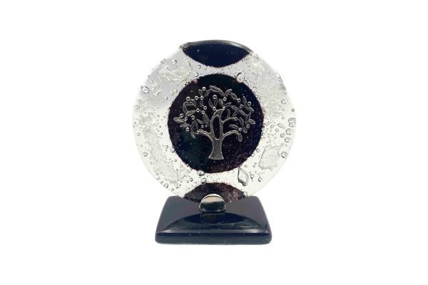 ΕΠΙΤΡAΠΕΖΙΟ ΔΙΑΚΟΣΜΗΤΙΚΟ ΓΟΥΡΙ ΕΛΙΑ ΑΣΗΜΙ ΣΕ ΦΥΣΗΤΟ ΓΥΑΛΙ ΜΑΥΡΟ/ΛΕΥΚΟ - Υ12cm