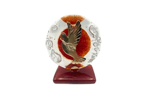 ΕΠΙΤΡAΠΕΖΙΟ ΔΙΑΚΟΣΜΗΤΙΚΟ ΓΟΥΡΙ ΠΕΡΙΣΤΕΡΙ ΧΡΥΣΟ ΣΕ ΦΥΣΗΤΟ ΓΥΑΛΙ ΚΟΚΚΙΝΟ/ΛΕΥΚΟ - Υ12cm