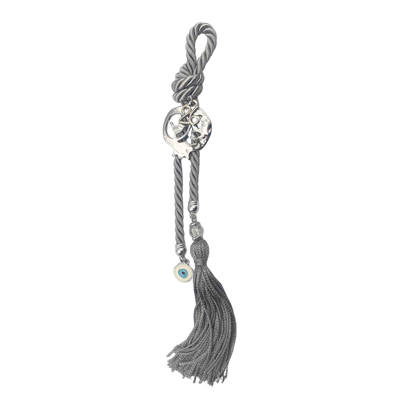 ΓΟΥΡΙ ΚΡΕΜΑΣΤΟ ΓΚΡΙ ΚΟΡΔΟΝΙ ΜΕ ΡΟΔΙ /ΠΟΥΛΙ ΑΣΗΜΙ ΚΑΙ ΚΡΥΣΤΑΛΟ - Y25cm
