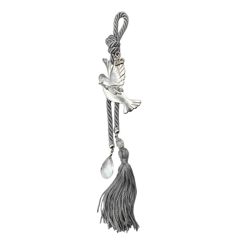 ΓΟΥΡΙ ΚΡΕΜΑΣΤΟ ΚΟΡΔΟΝΙ ΓΚΡΙ, ΠΟΥΛΙ ΑΣΗΜΙ, ΜΕ ΚΡΥΣΤΑΛΛΟ - Y30cm