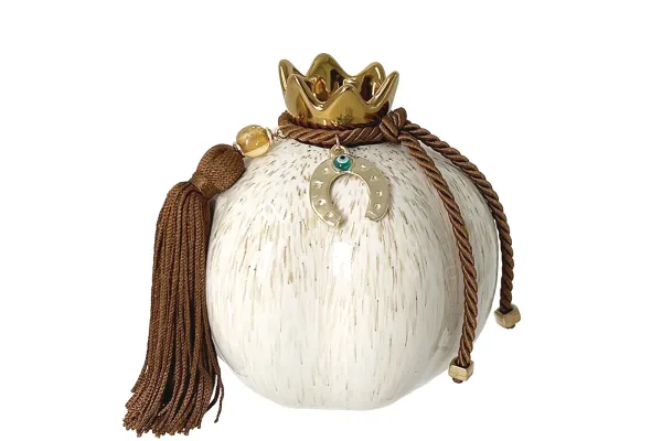 ΔΙΑΚΟΣΜΗΤΙΚΟ ΕΠΙΤΡΑΠΕΖΙΟ ΡΟΔΙ ΣΤΟΛΙΣΜΕΝΟ - ΧΡΩΜΑ: ΕΚΡΟΥ/ΧΡΥΣΟ - ΣΤΟΛΙΣΜΑ: ΧΡΥΣΟ ΠΕΤΑΛΟ, ΚΑΦΕ KΟΡΔΟΝΙ-ΦΟΥΝΤΑ - ΥΛΙΚΟ: ΚΕΡΑΜΙΚΟ - ΔΙΑΣΤΑΣΕΙΣ: Φ12.3x13cm - ΚΙΒΩΤΙΟ: 1 TABLE POMEGRANATE DECORATED - COLOR: CREAM/GOLD - DECOR: GOLD HORSESHOE, BROWN CORD-TUFT - MATERIAL: CERAMIC - DIMENSIONS: Φ12.3x13cm - BOX: 1