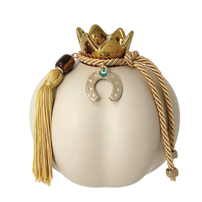 ΔΙΑΚΟΣΜΗΤΙΚΟ ΕΠΙΤΡΑΠΕΖΙΟ ΡΟΔΙ ΣΤΟΛΙΣΜΕΝΟ - ΧΡΩΜΑ: ΜΠΕΖ/ΧΡΥΣΟ - ΣΤΟΛΙΣΜΑ: ΧΡΥΣΟ ΠΕΤΑΛΟ, KΟΡΔΟΝΙ, ΦΟΥΝΤΑ - ΥΛΙΚΟ: ΚΕΡΑΜΙΚΟ - ΔΙΑΣΤΑΣΕΙΣ: Φ12.3x13cm - ΚΙΒΩΤΙΟ: 1 TABLE POMEGRANATE DECORATED - COLOR: BEIGE/GOLD - DECOR: GOLD HORSESHOE, CORD, TUFT - MATERIAL: CERAMIC - DIMENSIONS: Φ12.3x13cm - BOX: 1