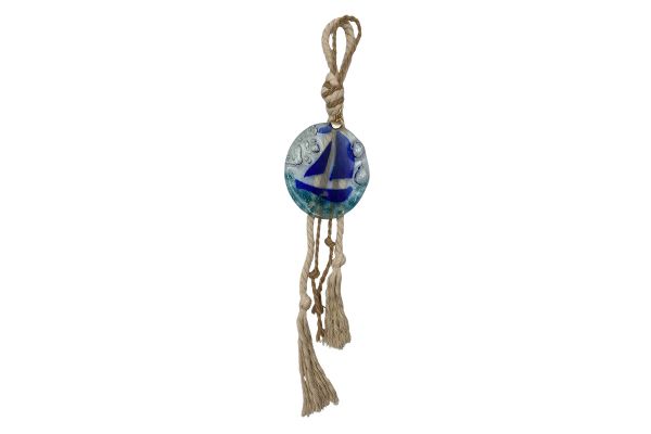 ΚΡΕΜΑΣΤΟ ΓΟΥΡΙ ΚAΡΑΒΙ ΣΕ ΦΥΣΗΤΟ ΓΥΑΛΙ ΜΠΛΕ/ΤΥΡΚΟΥΑΖ ΜΕ ΚΟΡΔΟΝΙ ΕΚΡΟΥ - Υ44 cm