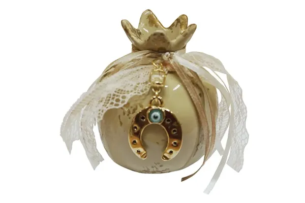 - ΣΤΟΛΙΣΜΕΝΟ ΡΟΔΙ - ΧΡΩΜΑ/ΘΕΜΑ: ΜΠΕΖ-ΧΡΥΣΟ / ΚΟΡΔΕΛΑ ΔΑΝΤΕΛΑ - ΥΛΙΚΟ: ΚΕΡΑΜΙΚΟ - ΔΙΑΣΤΑΣΕΙΣ: 9x10cm - ΚΙΒΩΤΙΟ: 1/54 - DECORATED POMEGRANATE - COLOR/THEME: BEIGE-GOLD/ RIBBON LACE - MATERIAL: CERAMIC - DIMENSIONS: 9x10cm - BOX: 1/54