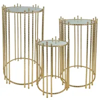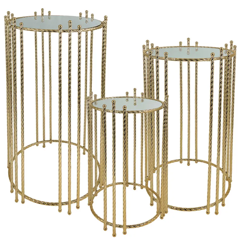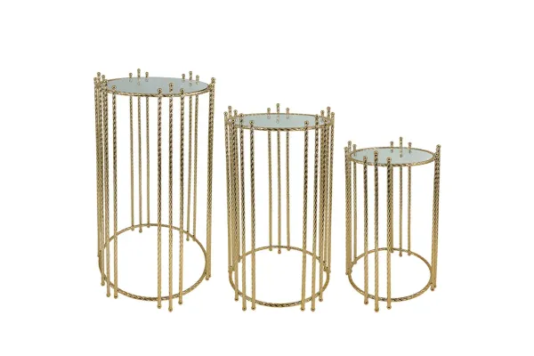 ΔΙΑΚΟΣΜΗΤΙΚA ΤΡΑΠΕΖΑΚΙΑ ΣΕΤ/3 - ΧΡΩΜΑ: ΧΡΥΣΟ - ΥΛΙΚΑ: ΜΕΤΑΛΛΟ, ΚΑΘΡΕΦΤΗΣ - ΣΧΕΔΙΟ: ΣΤΡΟΓΓΥΛΟ ΚΑΘΕΤΕΣ ΒΕΡΓΕΣ - ΚΙΒ.: 1 ΔΙΑΣΤΑΣΕΙΣ / DIMΕNSIONS: S:Φ28x50, M:Φ32x60, L:Φ38x70cm DECORATIVE TABLES SET/3 - COLOR: GOLD - MATERIALS: IRON, MIRROR - DESIGN: ROUND VERTICAL RODS - BOX: 1