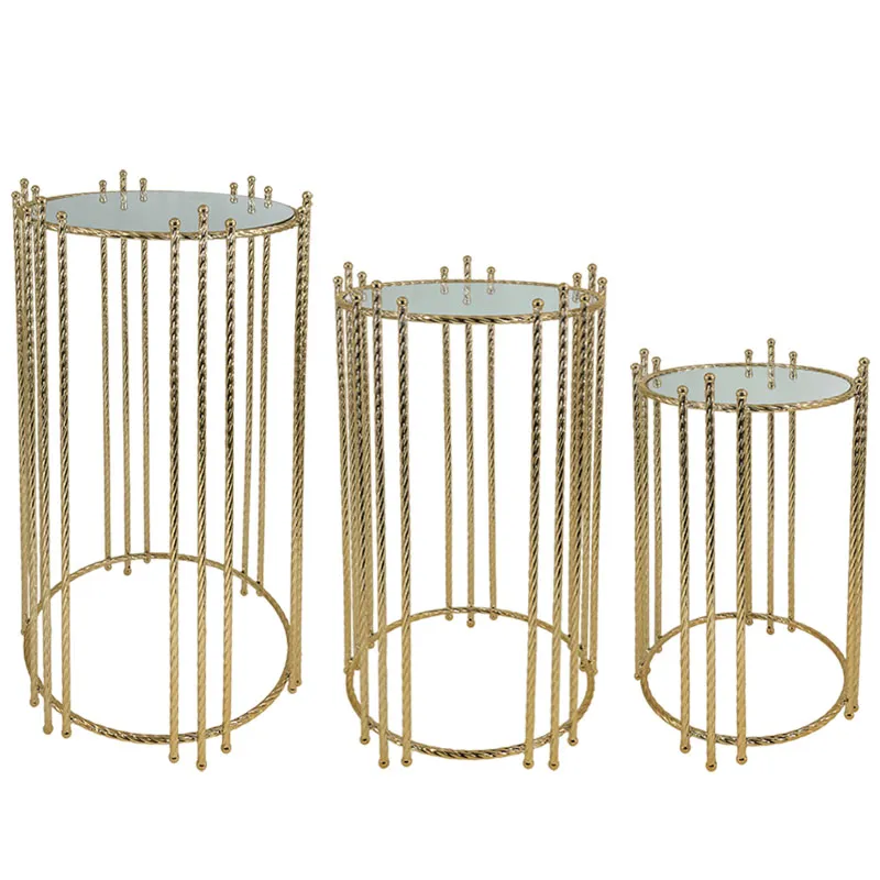 ΤΡΑΠΕΖΑΚΙΑ ΜΕΤΑΛΛΙΚΑ ΣΕΤ/3 ΧΡΥΣΟ ΣΤΡΟΓΓΥΛΑ ΜΕ ΚΑΘΡΕΦΤΗ-S:Φ28x50,M:Φ32x60,L:Φ38x70cm 1/ΚΙΒ