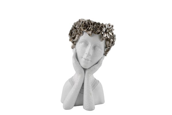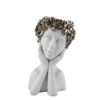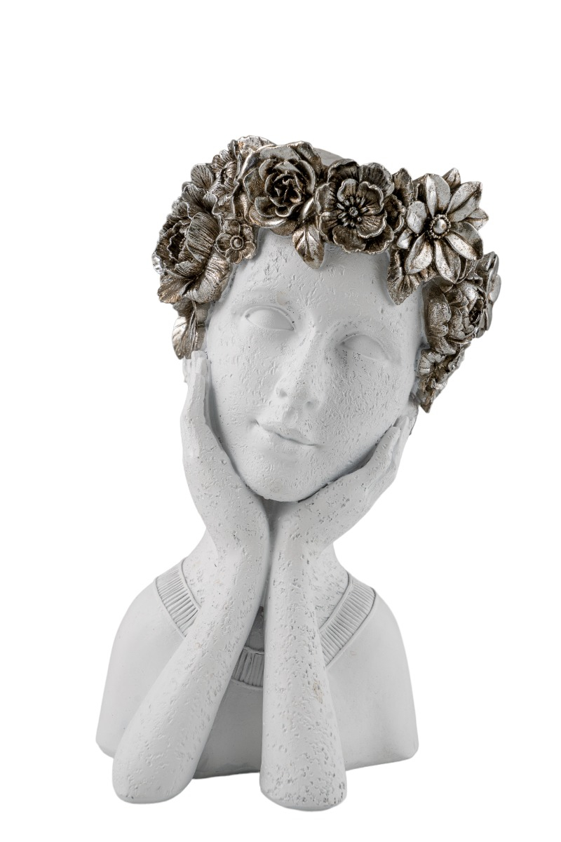 ΔΙΑΚΟΣΜΗΤΙΚΟ ΠΟΛΥΕΣΤΕΡΙΚΟ ΒΑΖΟ ΠΡΟΣΩΠΟ ΛΕΥΚΟ ΜΕ ΑΣΗΜΙ ΛΕΠΤΟΜΕΡΕΙΕΣ 14,7Χ17,5Χ26,5ΕΚ