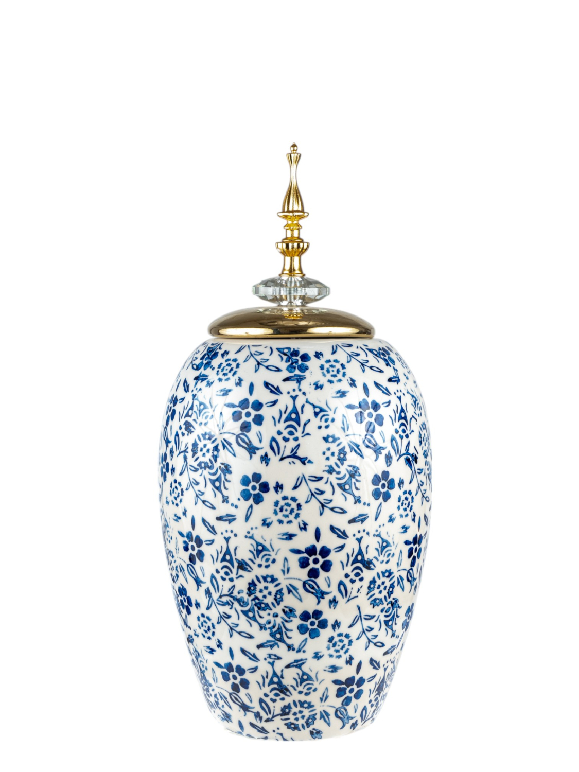 ΚΕΡΑΜΙΚΟ ΒΑΖΟ ΜΕ ΧΡΥΣΟ ΚΑΠΑΚΙ ΜΕ ΛΟΥΛΟΥΔΑΚΙ ΜΠΛΕ 17,5Χ37ΕΚ
