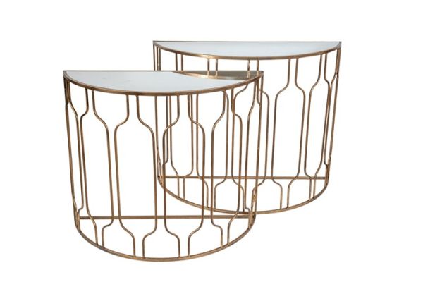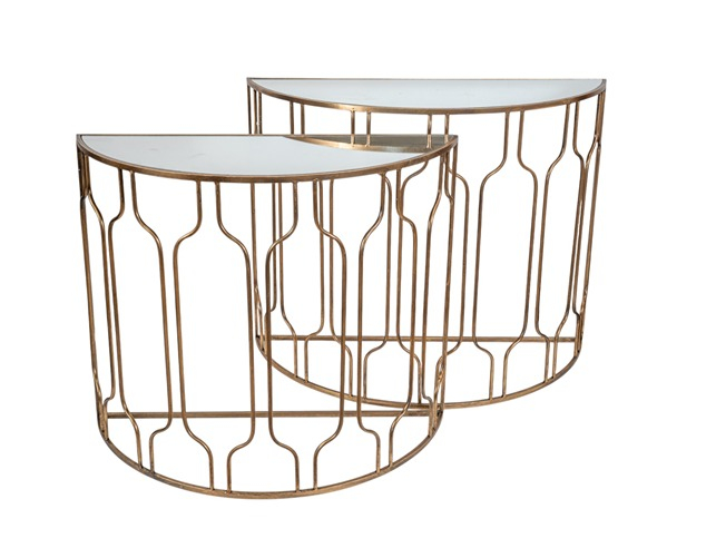 ΜΕΤΑΛΛΙΚΕΣ ΚΟΝΣΟΛΕΣ ΣΕΤ 2 ΟΒΑΛ ΧΡΥΣΕΣ ΜΕ ΤΖΑΜΙ ΚΑΘΡΕΠΤΗ 100Χ41Χ80,5 ΚΑΙ 90Χ36Χ75,5