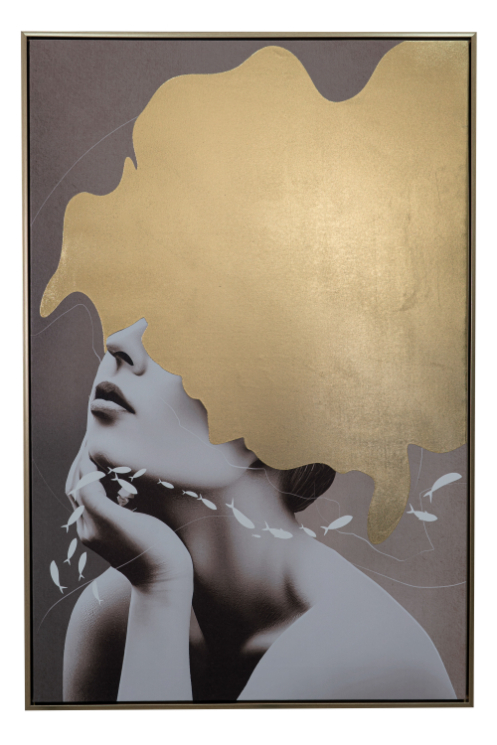 ΠΙΝΑΚΑΣ ΜΕ ΚΟΡΝΙΖΑ ΚΟΠΕΛΑ ΓΚΡΙ ΦΟΝΤΟ ΜΕ ΧΡΥΣΟ.60Χ90Χ3ΕΚ